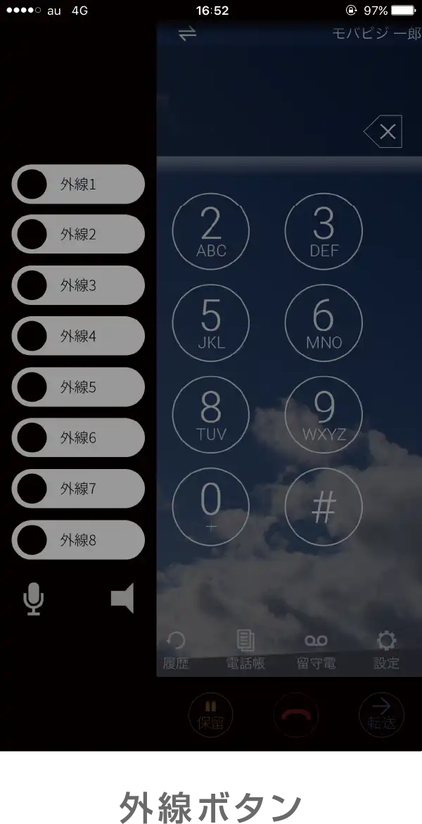 スマホアプリでもあえて外線ボタン(パークボタン)を用意するなど、見た目にもビジネスフォンをそのまま採用しているので、操作に